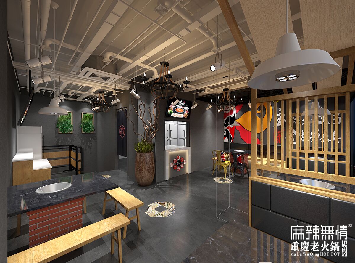 麻辣无情重庆老火锅西华店效果图出炉!店面13张餐桌,64个餐位,预计10月底试营业。