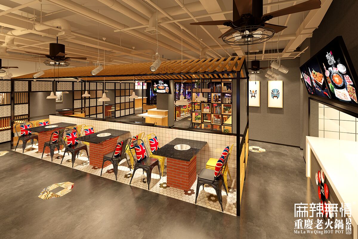 麻辣无情重庆老火锅嘉乐城店效果图图出炉!店面208平方,16张餐桌,96个餐位。