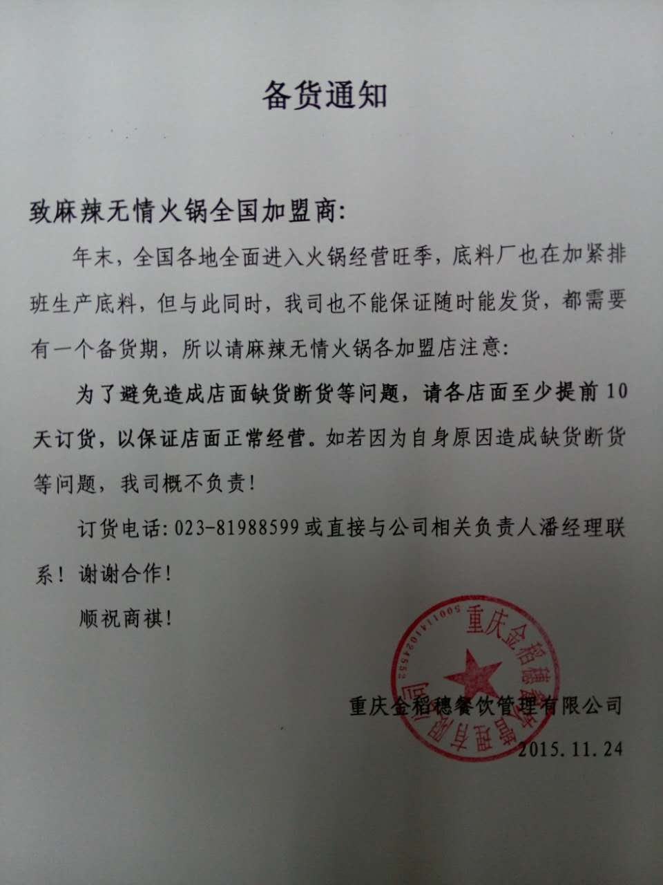 年末将至,为了保证各店面出现缺货断货的问题,请各加盟店注意店面库存,及时做好备货。